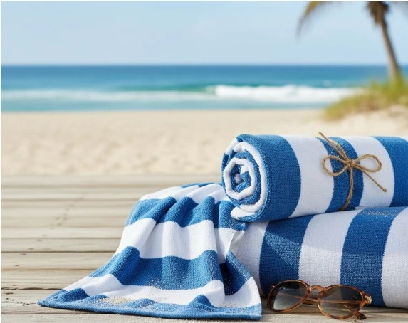 Our beach towels are designed to bring both vibrant style and essential comfort to your coastal escapes. Crafted from soft, absorbent cotton, these towels feature eye-catching white and blue stripes that evoke the classic charm of a seaside getaway. Generously sized for lounging on the sand or drying off after a refreshing dip, they are built to be your reliable partner for every beach day, poolside retreat, or vacation adventure.